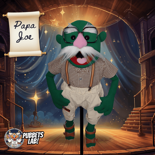 Papa Joe – Green Full-Body Hand Puppet with Moustache & Glasses | DHL Express Shipping Included