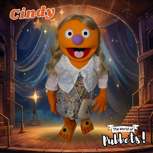 Cindy - Premium Orange 27" Full-Body Hand Puppet with Outfit, Shoes & Carry Bag