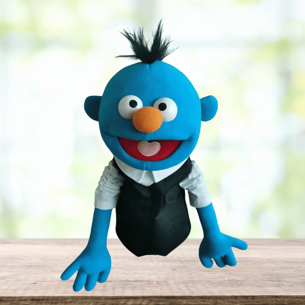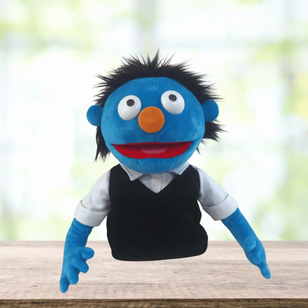 Sam – Pubbet Sidekick Blue Boy Hand Puppet with Carry Bag (14”/35cm)