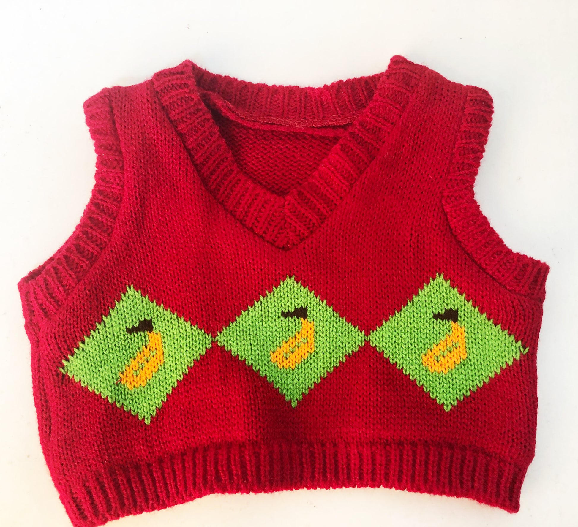 - 🍌 Knitted yellow vest with banana design (stretch fit)