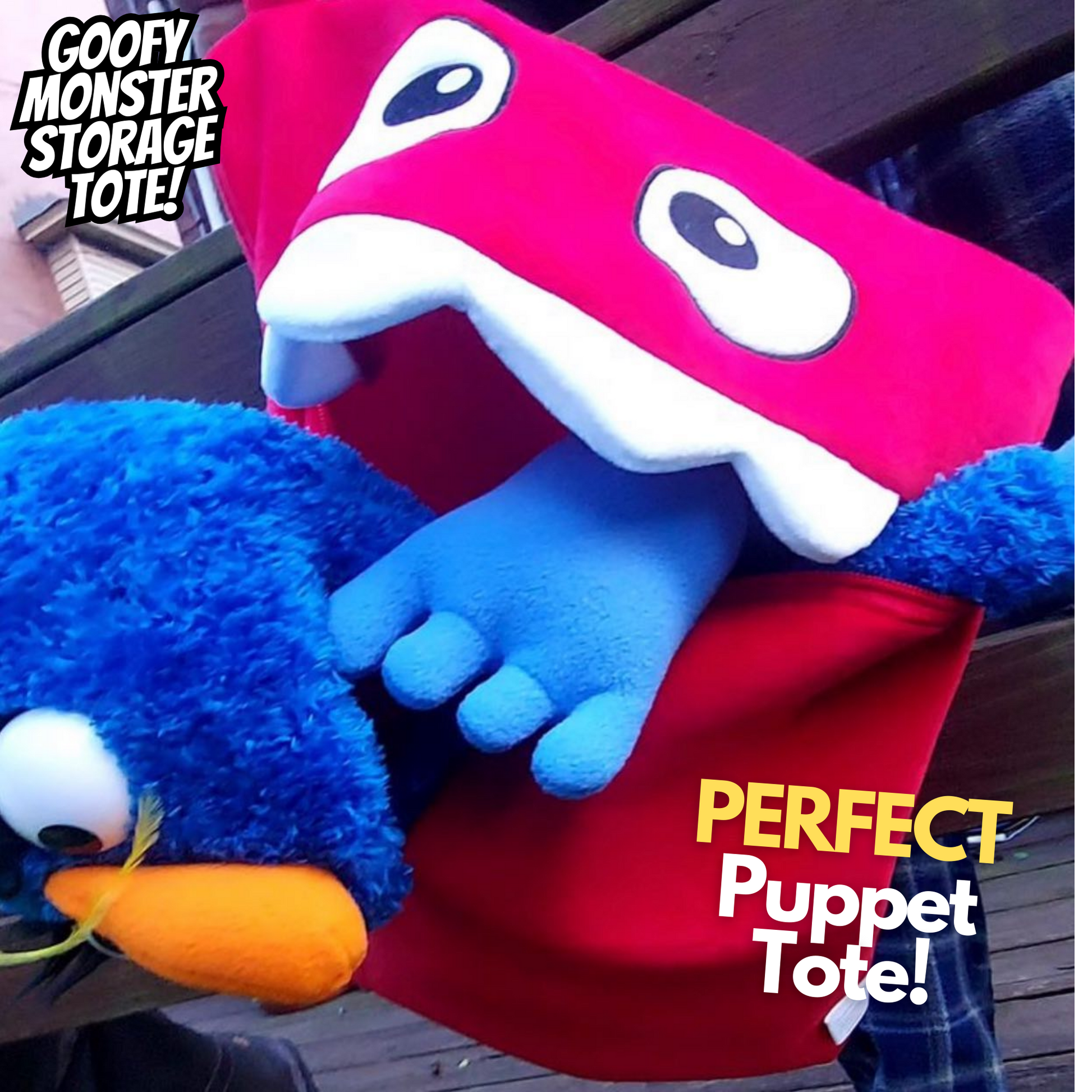 📏 Our Goofy Monster Storage Tote is the perfect size for our range of 60cm full-body puppets and 35cm Pubbet mini puppets, ensuring that your beloved puppet friends have a cozy and secure home.