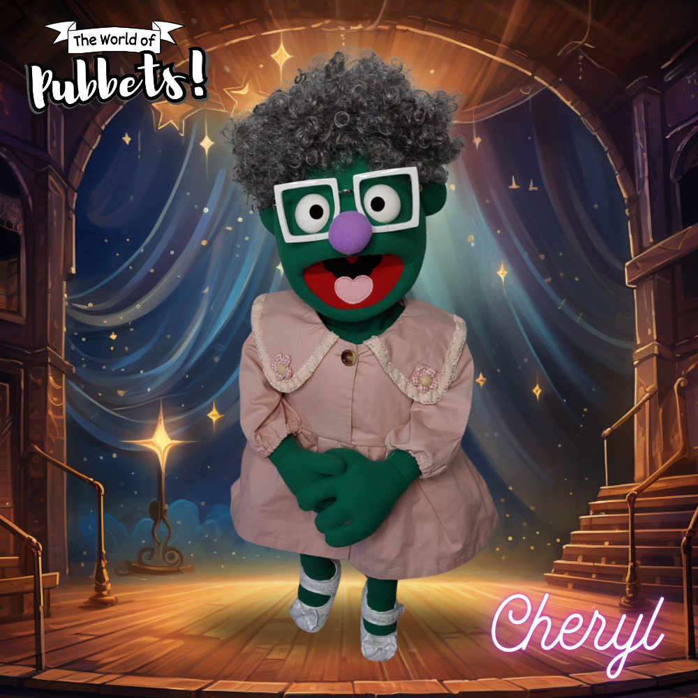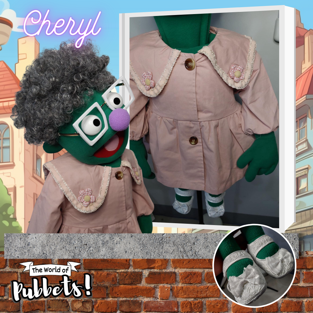 Welcome Cheryl, the gentle grandma puppet. With her delicate dress, kind smile, and loving personality, Cheryl is ready to bring warmth and comfort to your puppet shows and storytelling sessions!