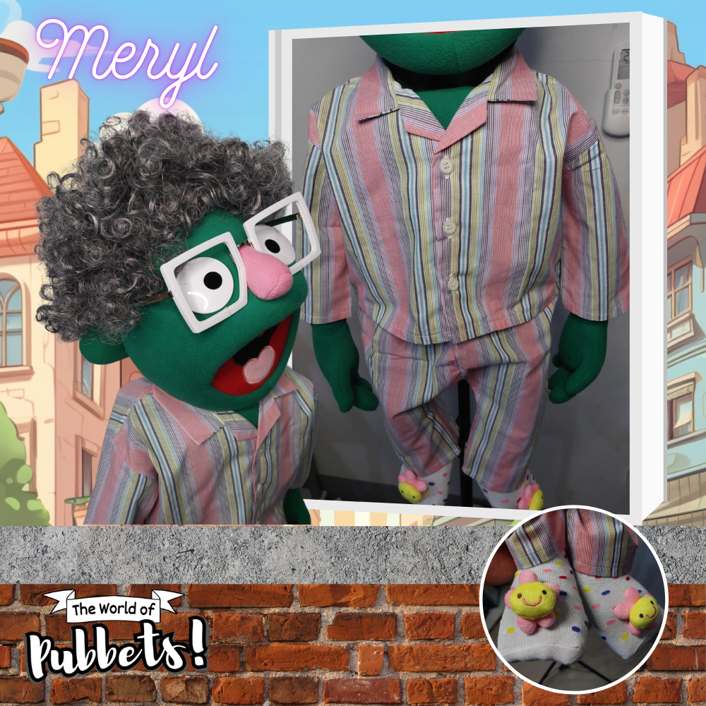Introducing Meryl, the fun-loving grandma puppet. With her cozy pajamas, cheerful smile, and playful personality, Meryl is ready to join you for bedtime stories and cozy evenings!
