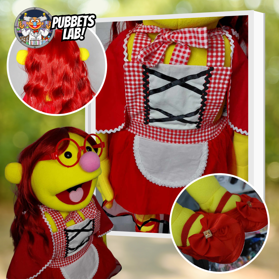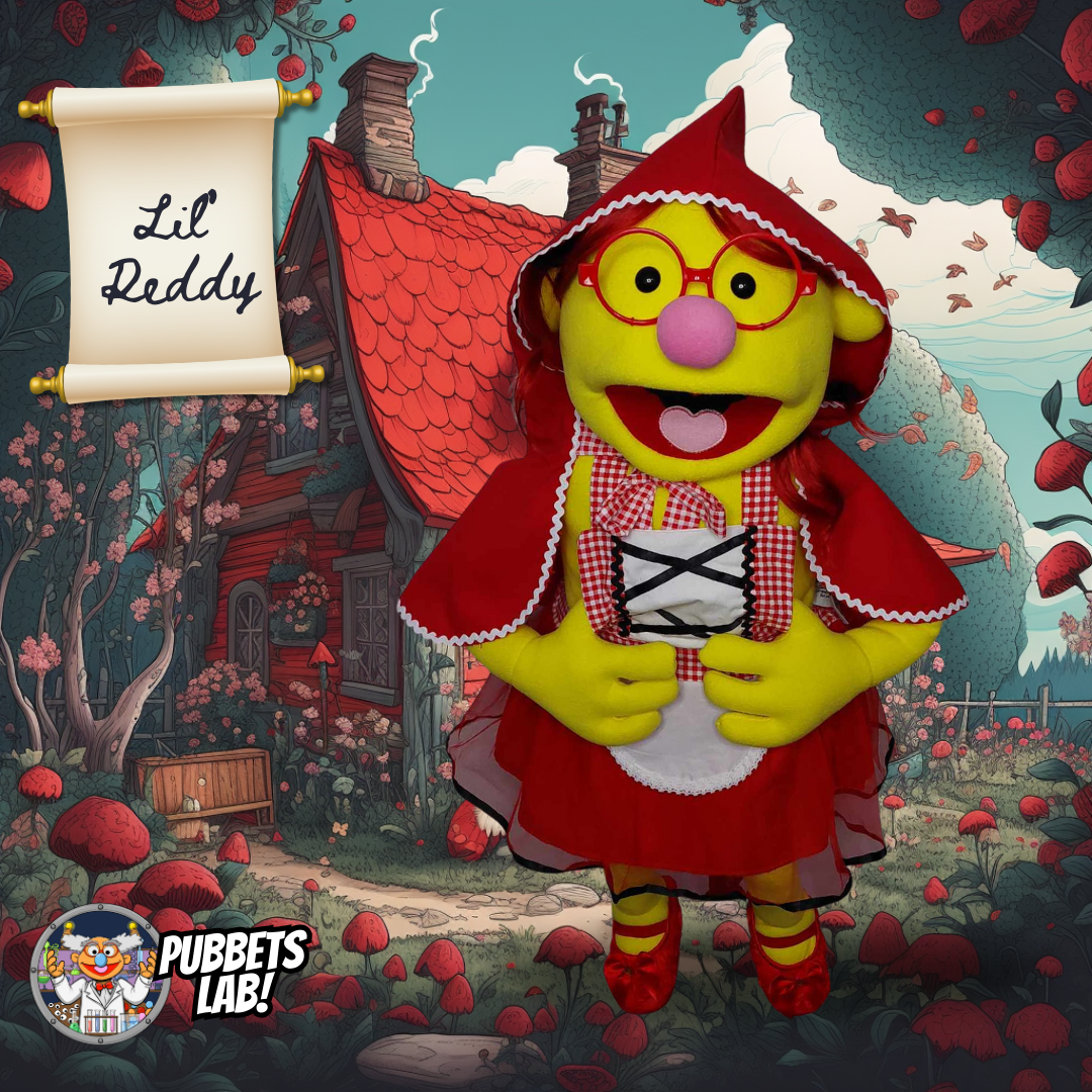 Get ready for an enchanting adventure with Lil' Reddy. With her vibrant yellow skin, charming red outfit inspired by the classic storybook character, and long red hair, she's the perfect puppet for creating magical tales and memories!