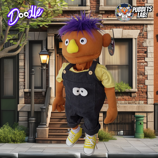 Doodle - Premium Brown 30"/80cm Full-Body Boy Puppet with Overalls Outfit & Carry Bag