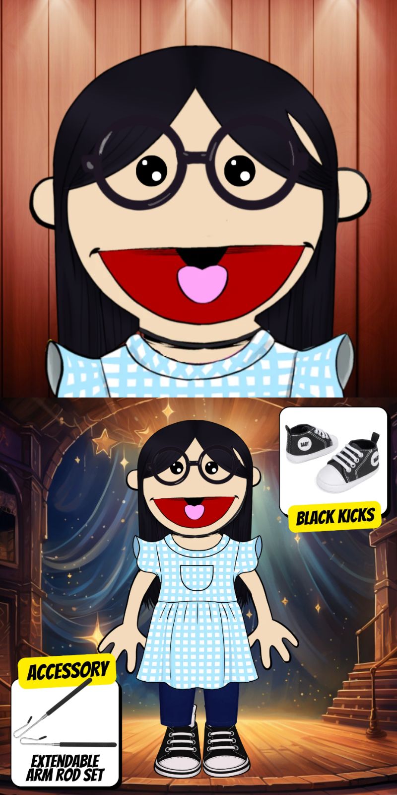 Looking for a human style puppet character? Contact us for commissions or design your own at the Pubbets Lab