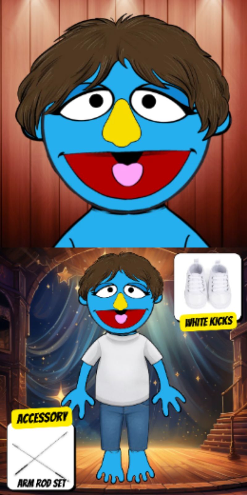 Looking for a human style puppet character? Contact us for commissions or design your own at the Pubbets Lab