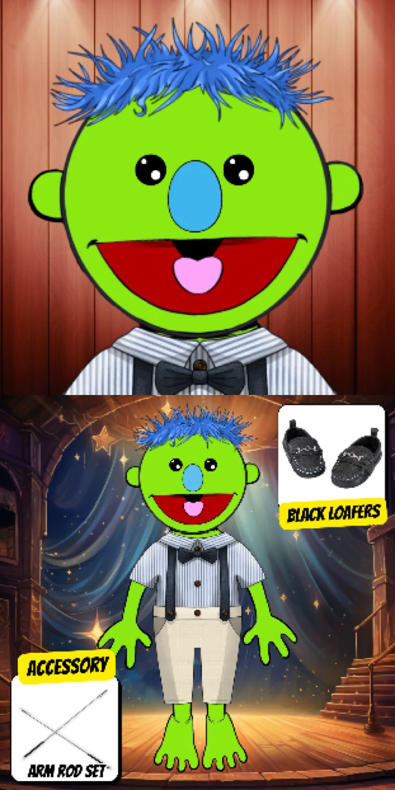 Looking for a human style puppet character? Contact us for commissions or design your own at the Pubbets Lab