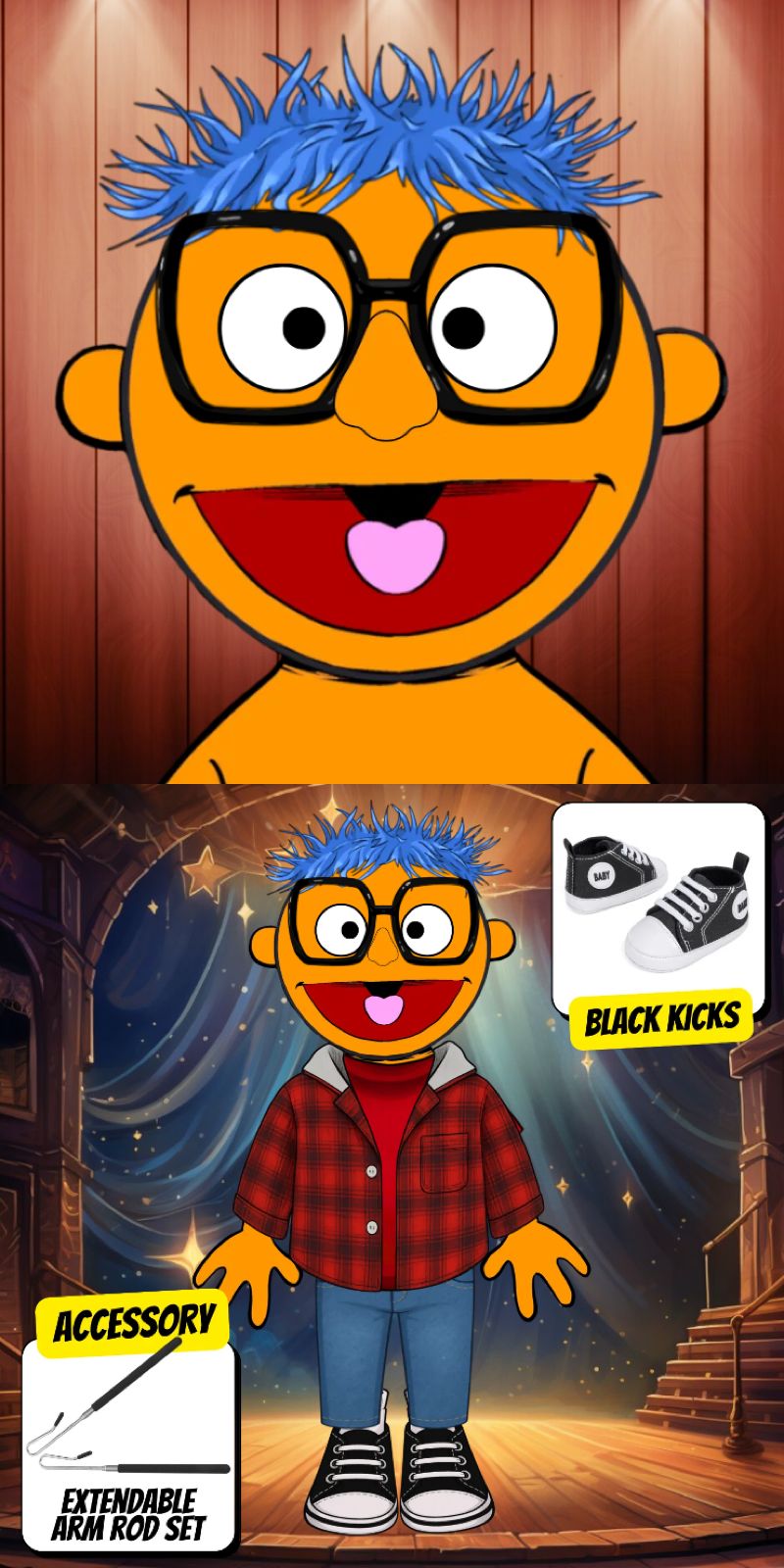Looking for a human style puppet character? Contact us for commissions or design your own at the Pubbets Lab