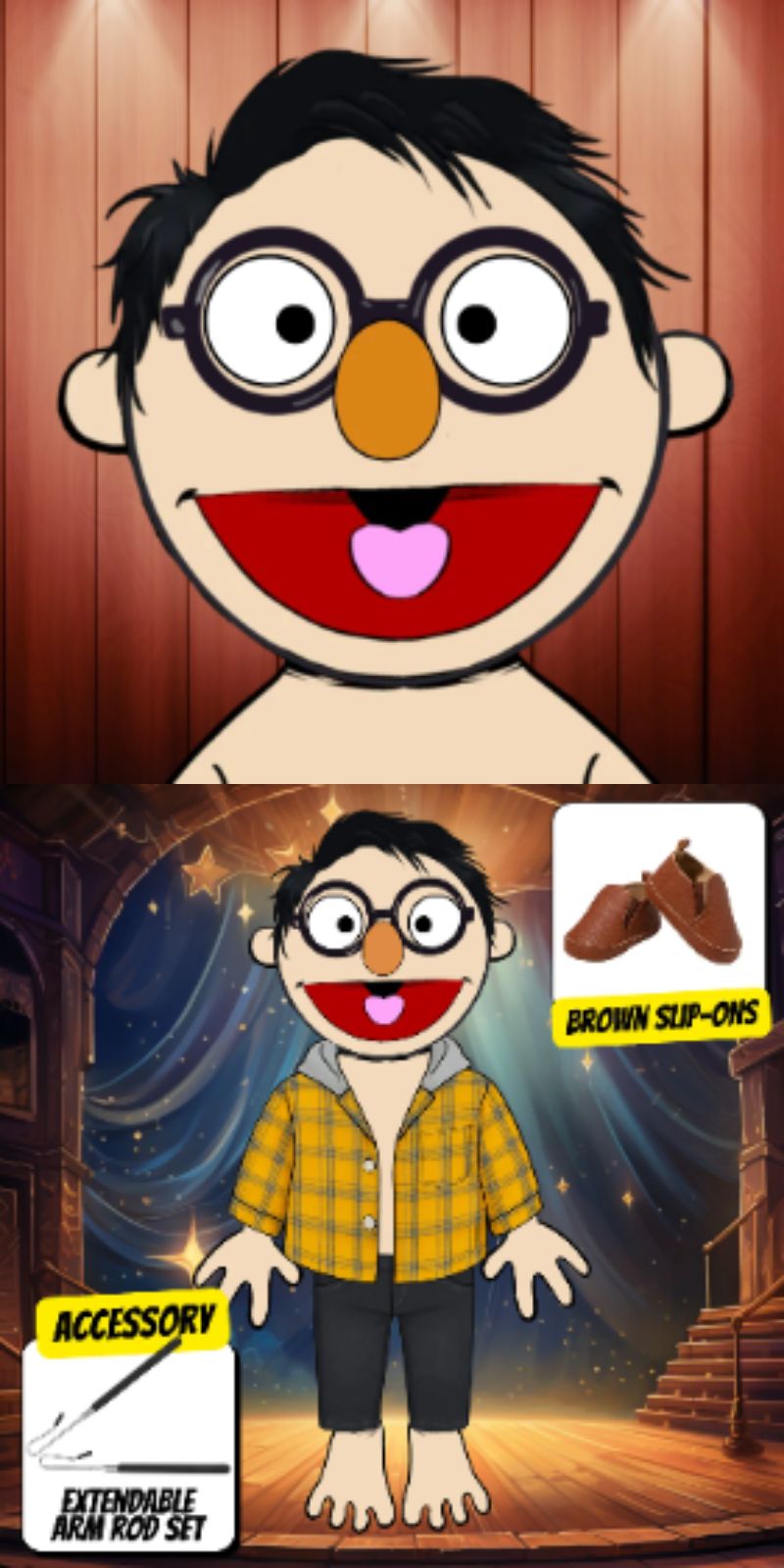 Looking for a human style puppet character? Contact us for commissions or design your own at the Pubbets Lab