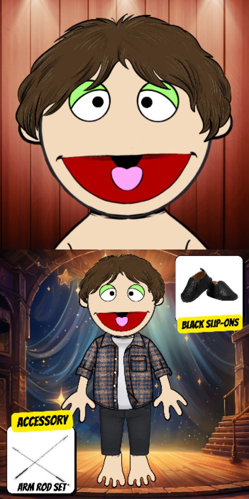 Looking for a human style puppet character? Contact us for commissions or design your own at the Pubbets Lab