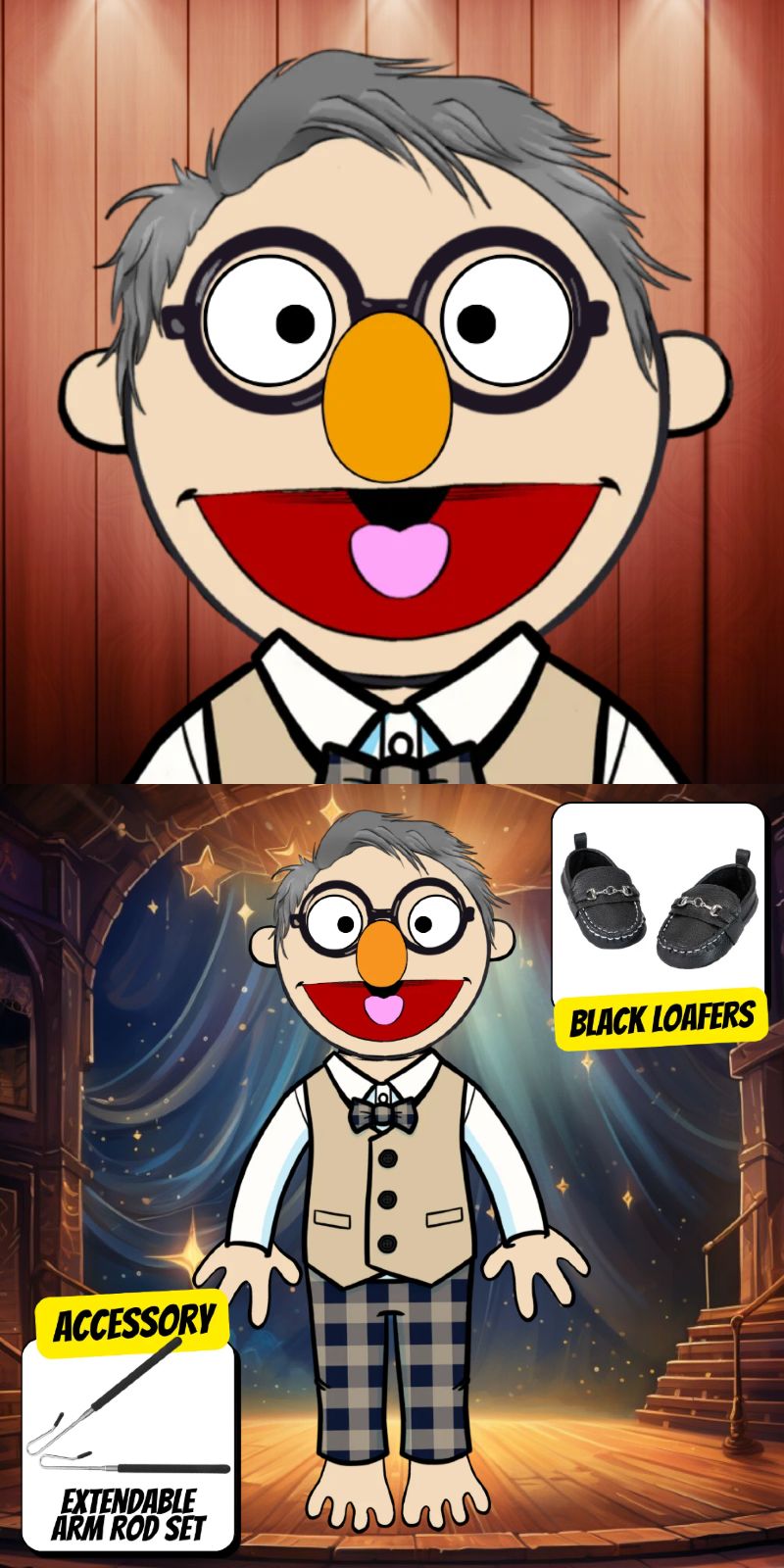 Looking for a human style puppet character? Contact us for commissions or design your own at the Pubbets Lab
