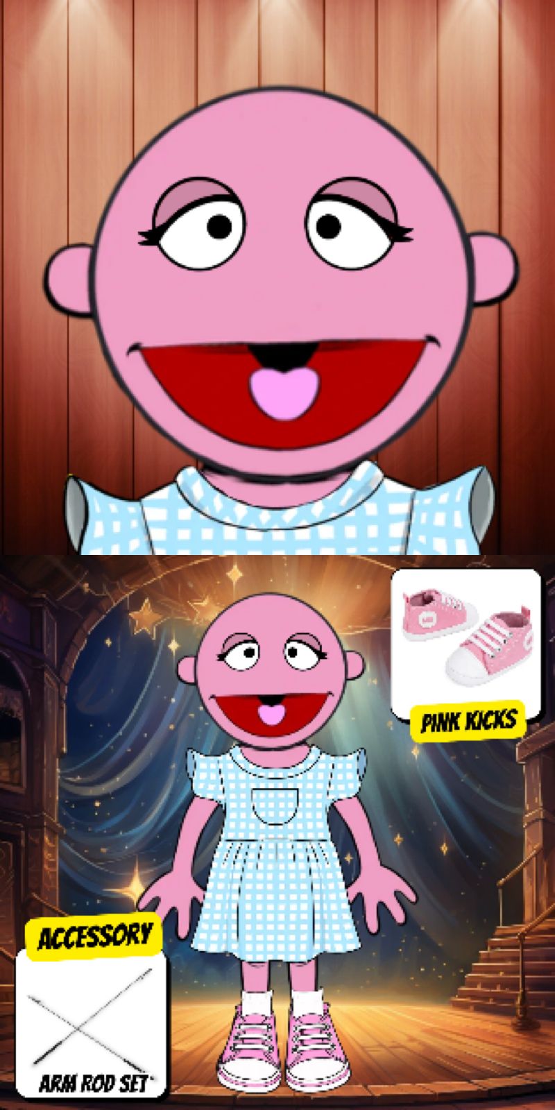 Looking for a human style puppet character? Contact us for commissions or design your own at the Pubbets Lab