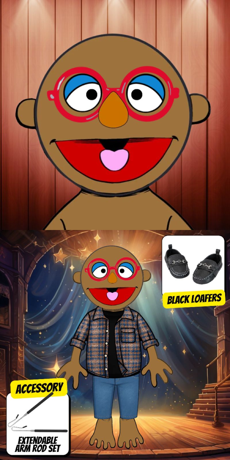 Looking for a human style puppet character? Contact us for commissions or design your own at the Pubbets Lab
