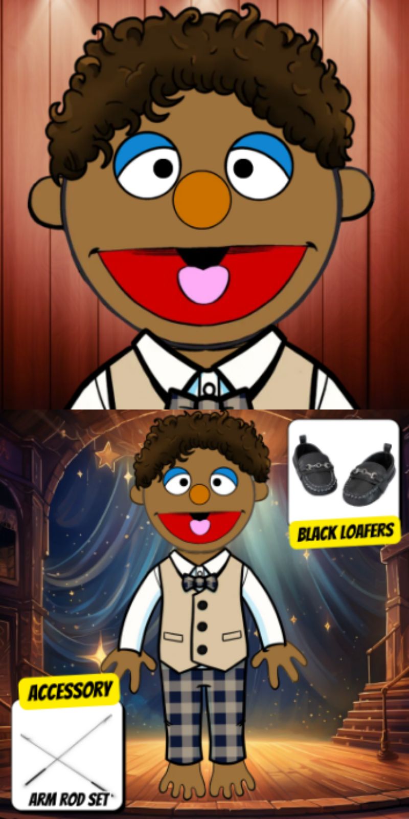 Looking for a human style puppet character? Contact us for commissions or design your own at the Pubbets Lab