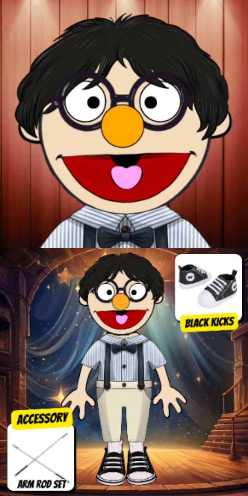 Looking for a human style puppet character? Contact us for commissions or design your own at the Pubbets Lab