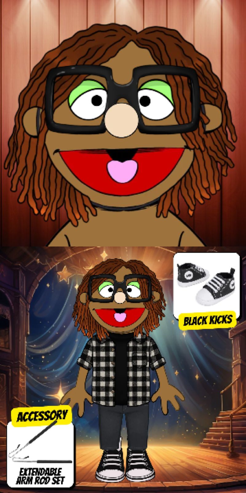 Looking for a human style puppet character? Contact us for commissions or design your own at the Pubbets Lab