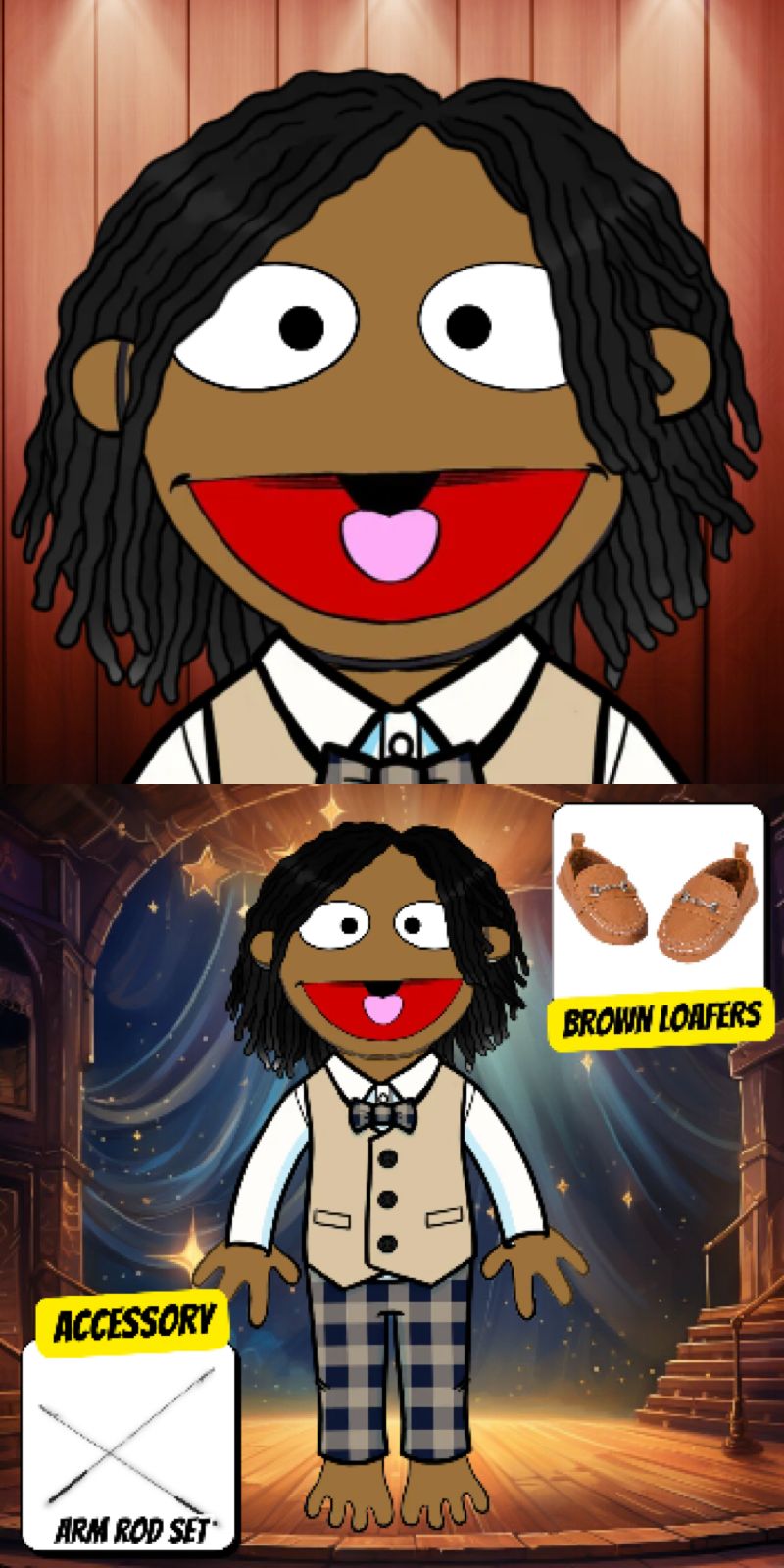 Looking for a human style puppet character? Contact us for commissions or design your own at the Pubbets Lab