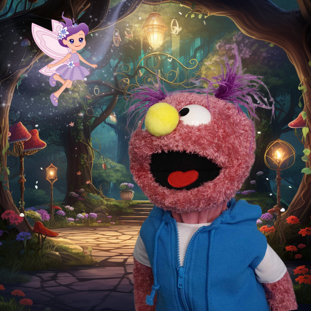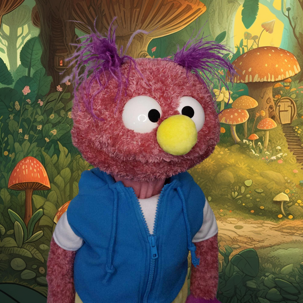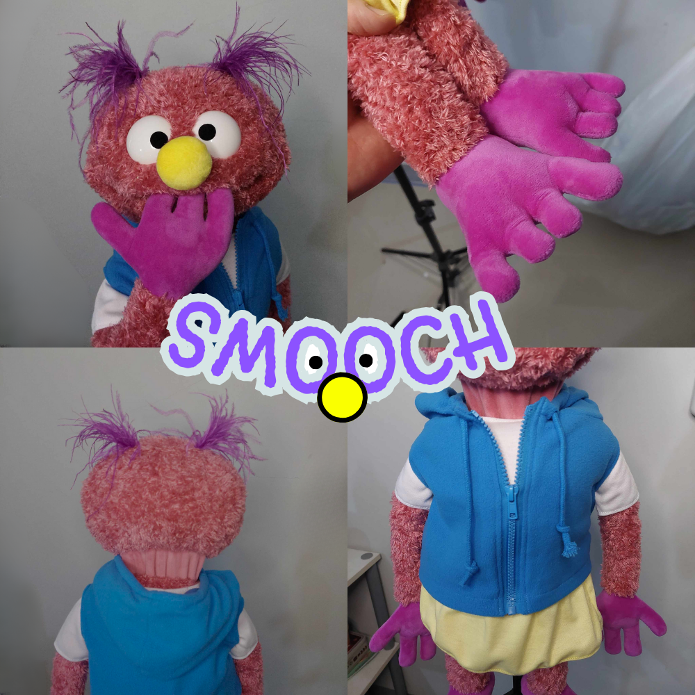 Smooch is a delightful 24-inch girl monster puppet, perfect for cozy family nights, classroom activities, and grand stage shows. With her vibrant personality and charming design, Smooch will enchant audiences of all ages.