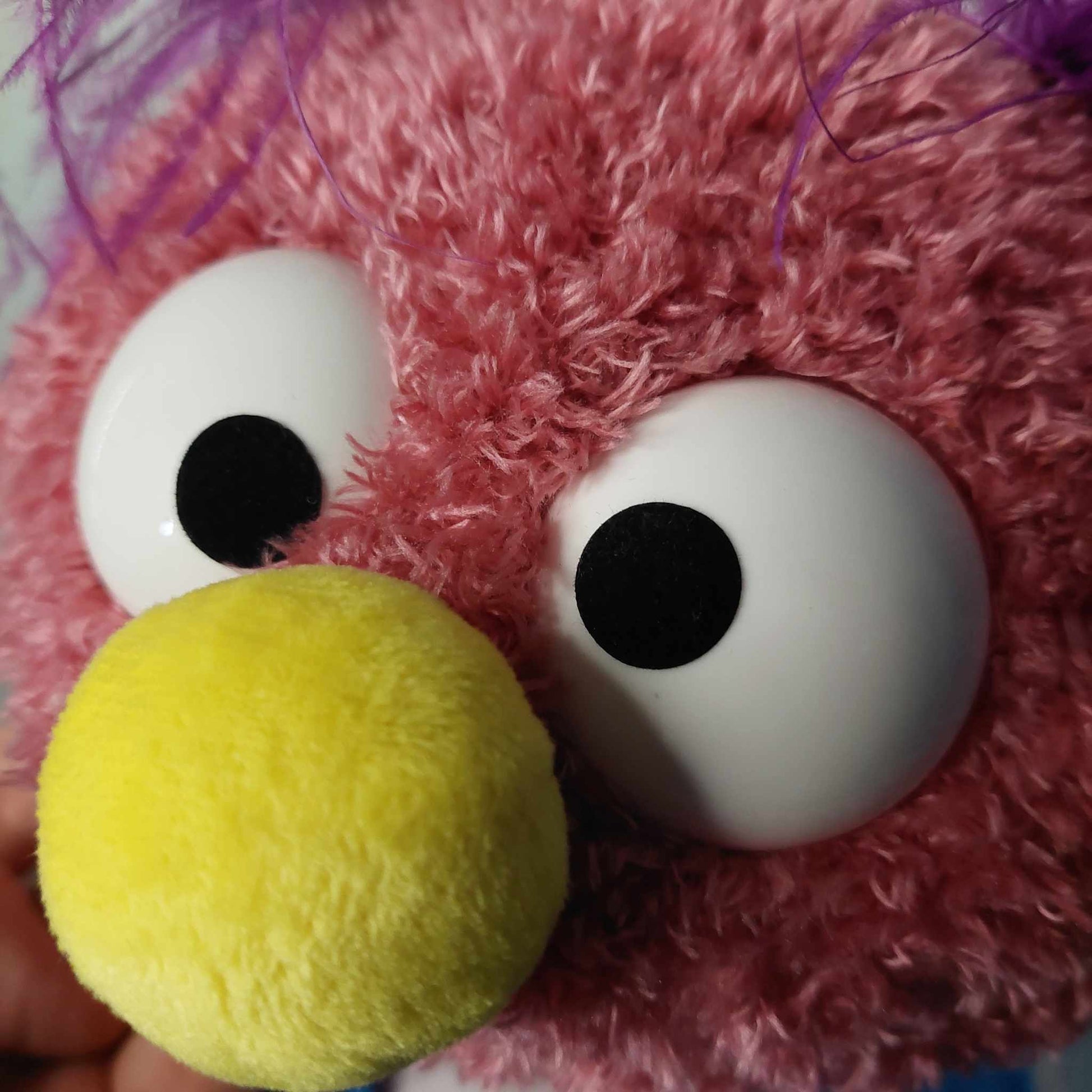 - Color: Mauve with purple faux ostrich feather hair, yellow nose, and purple hands and feet.