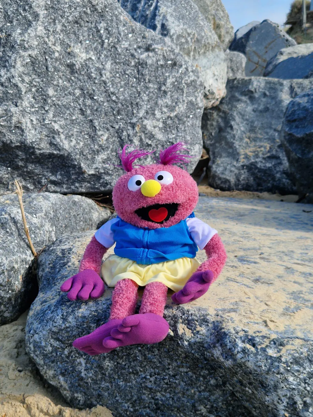Love Smooch as she is a comfortable pubbet and surprisingly light considering her larger size. Also taken her outdoors this summer (2025)... Her pink colour really pops and looks great, especially on a sunny day ☀️ The photos on here or even my own content photos look great but in person... She looks fabulous! You have to see her in person with your own eyes and natural bright sunlight to see how adorable she looks. Great character and a lot of fun to use. I love Smooch. 🤗