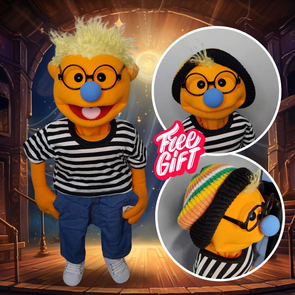 Timbo - Premium Full-Body Orange Boy Puppet with Bonus Knitted Cap